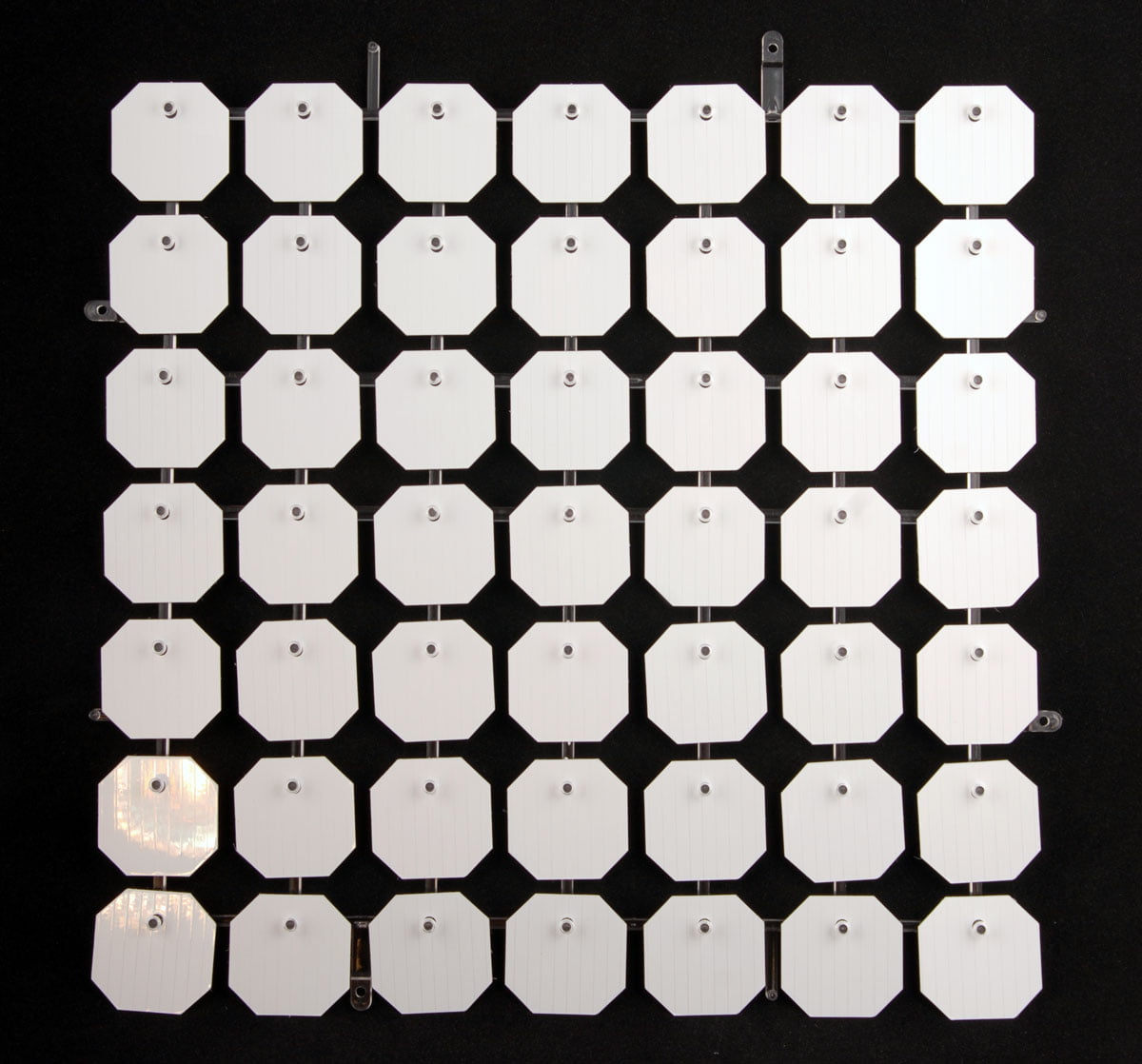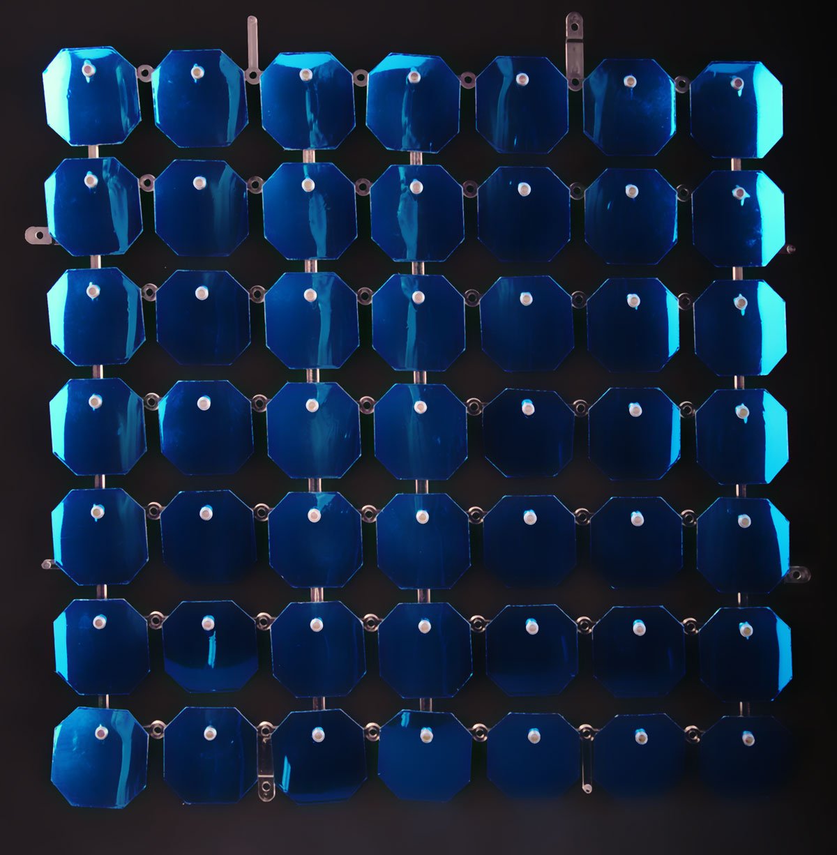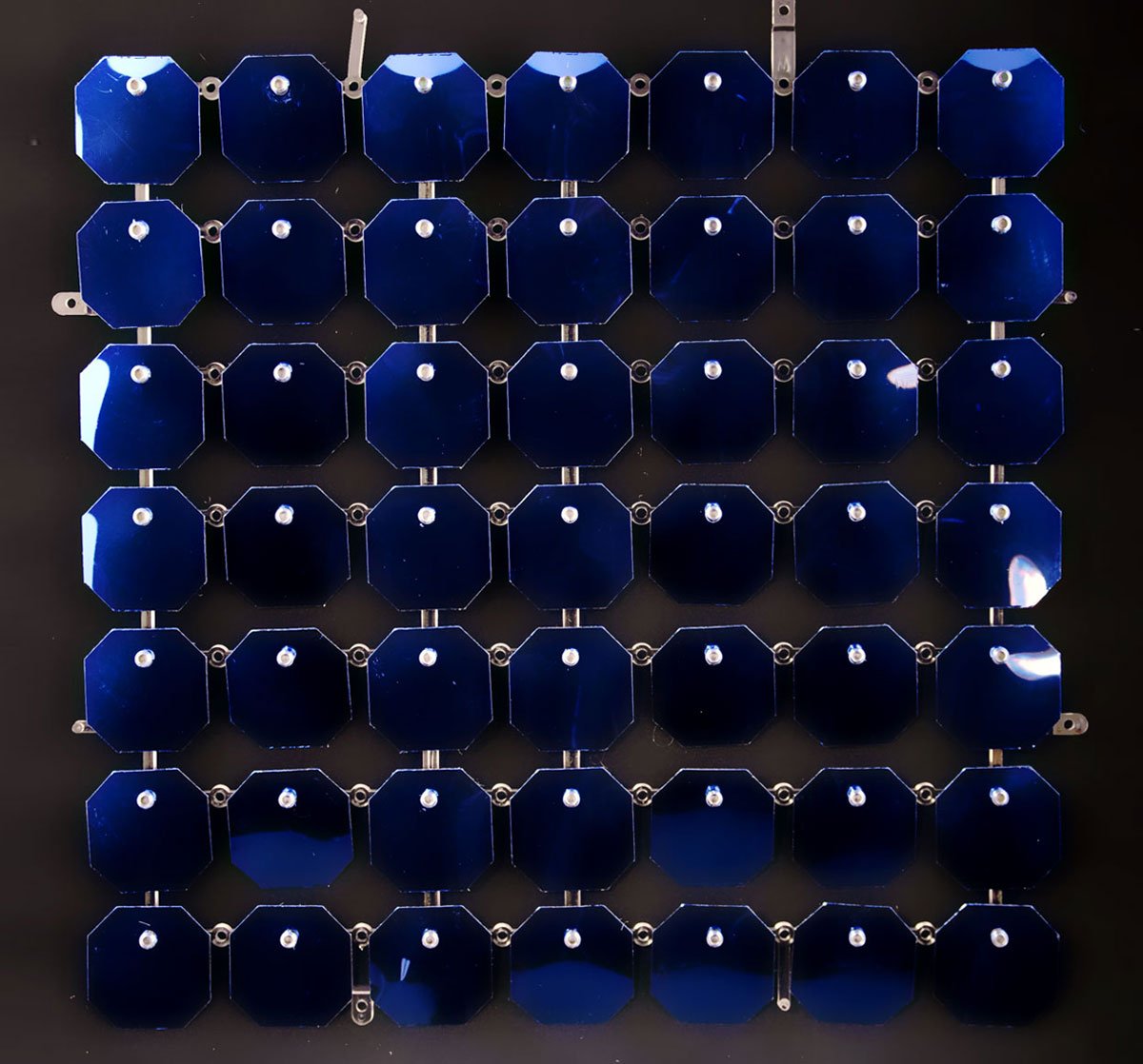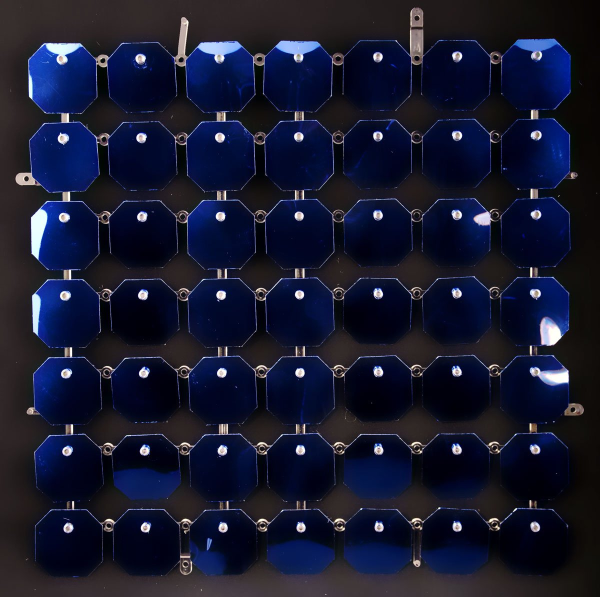 SolaRay® panel sequins are available in three stock shapes, Circles, Octagons and Squares. Circles and Octagons are available in both sequin sizes, the larger 1.5 inch diameter and smaller 0.75 inch diameter SolaRay®. Square shaped sequins are currently only available in our larger 1.5 inch SolaRay®