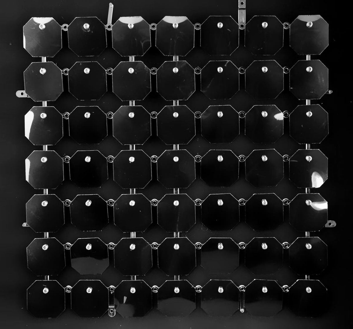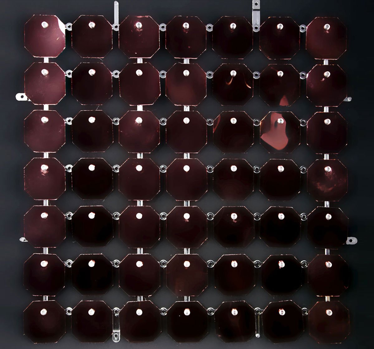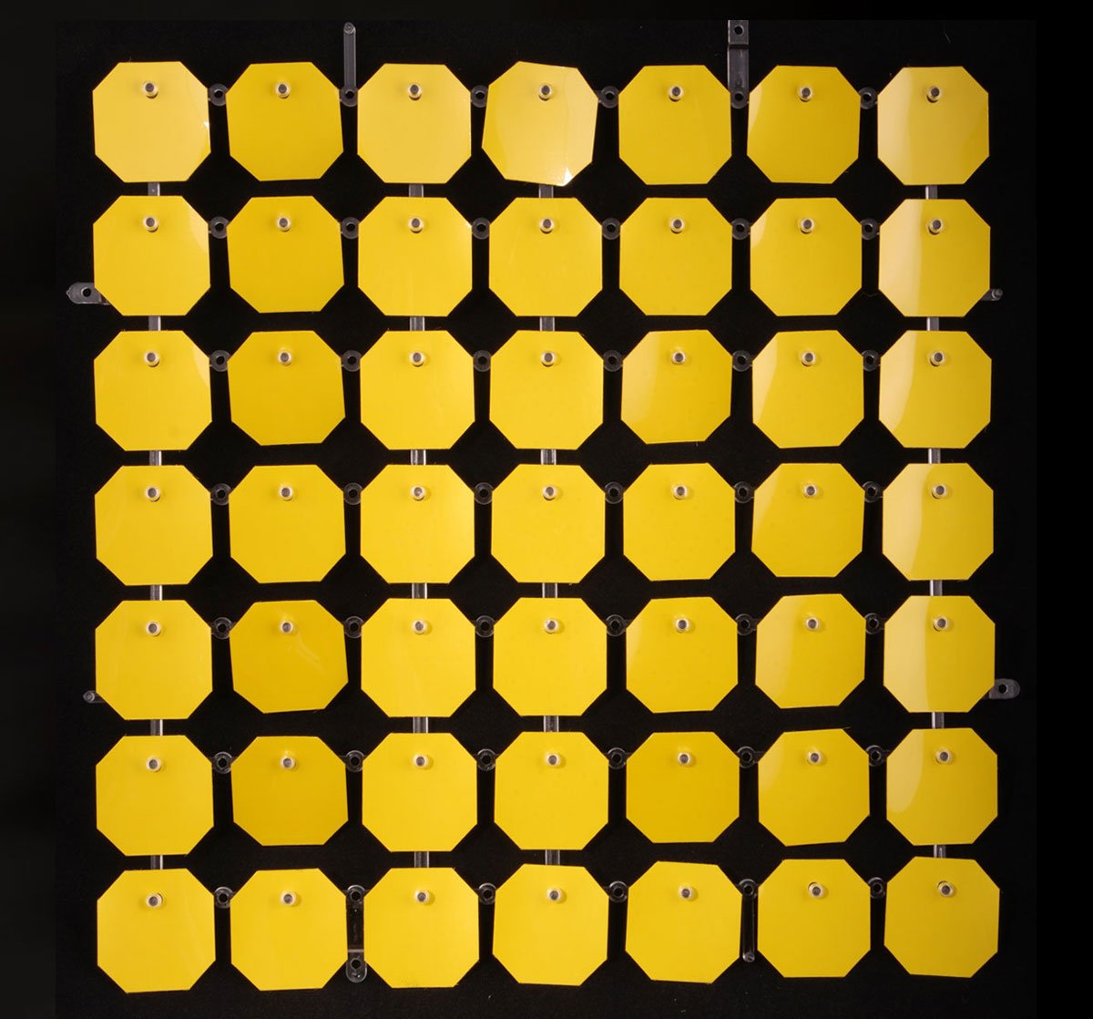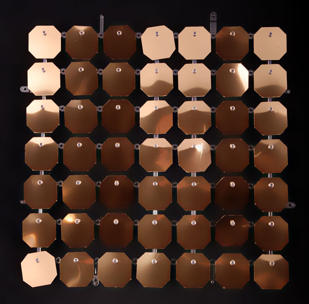 SolaRay® panel sequins are available in three stock shapes, Circles, Octagons and Squares. Circles and Octagons are available in both sequin sizes, the larger 1.5 inch diameter and smaller 0.75 inch diameter SolaRay®. Square shaped sequins are currently only available in our larger 1.5 inch SolaRay®